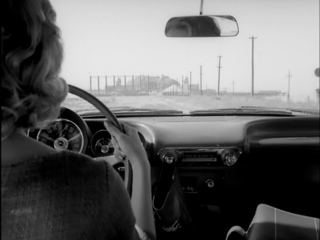 There's a few very special moments while she is driving the car that really stand out in my mind. We are given a morbid shot of a ghastly face watching Mary from the passenger side window. What makes this images so disturbing is the fact that the car is moving along at a good pace and the figure is just hovering there at the window. The way the man is lit also effects the impact of the shot. A glowing light shines up into his face as he locks eyes with Mary's character, causing her to scream out in shock. It's a great moment in the film and it's one of many.