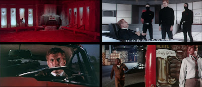 Another beneficial aspect of the production would be the set design. With an obviously low budget and a limited amount of resources, the filmmakers were able to come up with a good amount of elaborate locales for our agents to find themselves in. Take the main villain Rehte, played by Folco Lulli, and his underwater lair for instance. Its architecture is outstandingly obtuse, filled with metallic circular frames and a rotund central hub that appears as expansive and robust as its owner. The structure and mere size of this aquatic palace is a sight and the elaborate nature of the place helps enrich the look of the film, making you believe that the budget could have been much more then first presented. There's also an astoundingly cruel cryo-chamber room, where Rehte can take a gander at the various enemies that he has had frozen over the years. Ah the memories. Overall the underground lair is a spectacular location to end the film on and the filmmakers make good use out of its exciting design and layout.